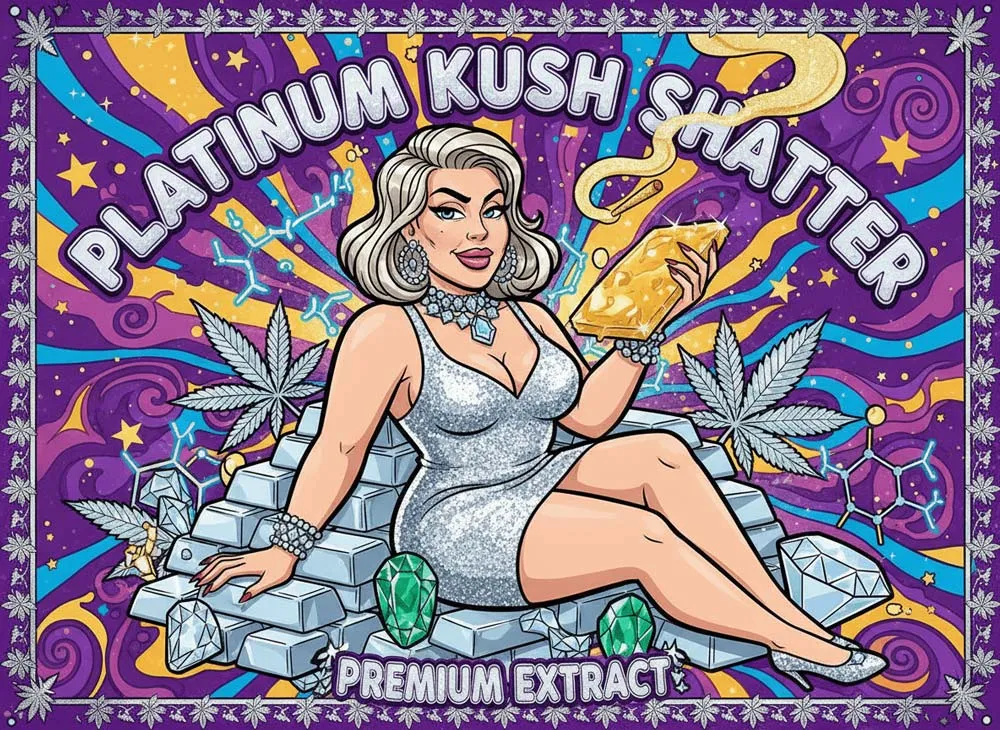 Platinum Kush Shatter is a luxurious indica cannabis extract with earthy, sweet flavors and deeply relaxing, calming effects—perfect for unwinding in style.